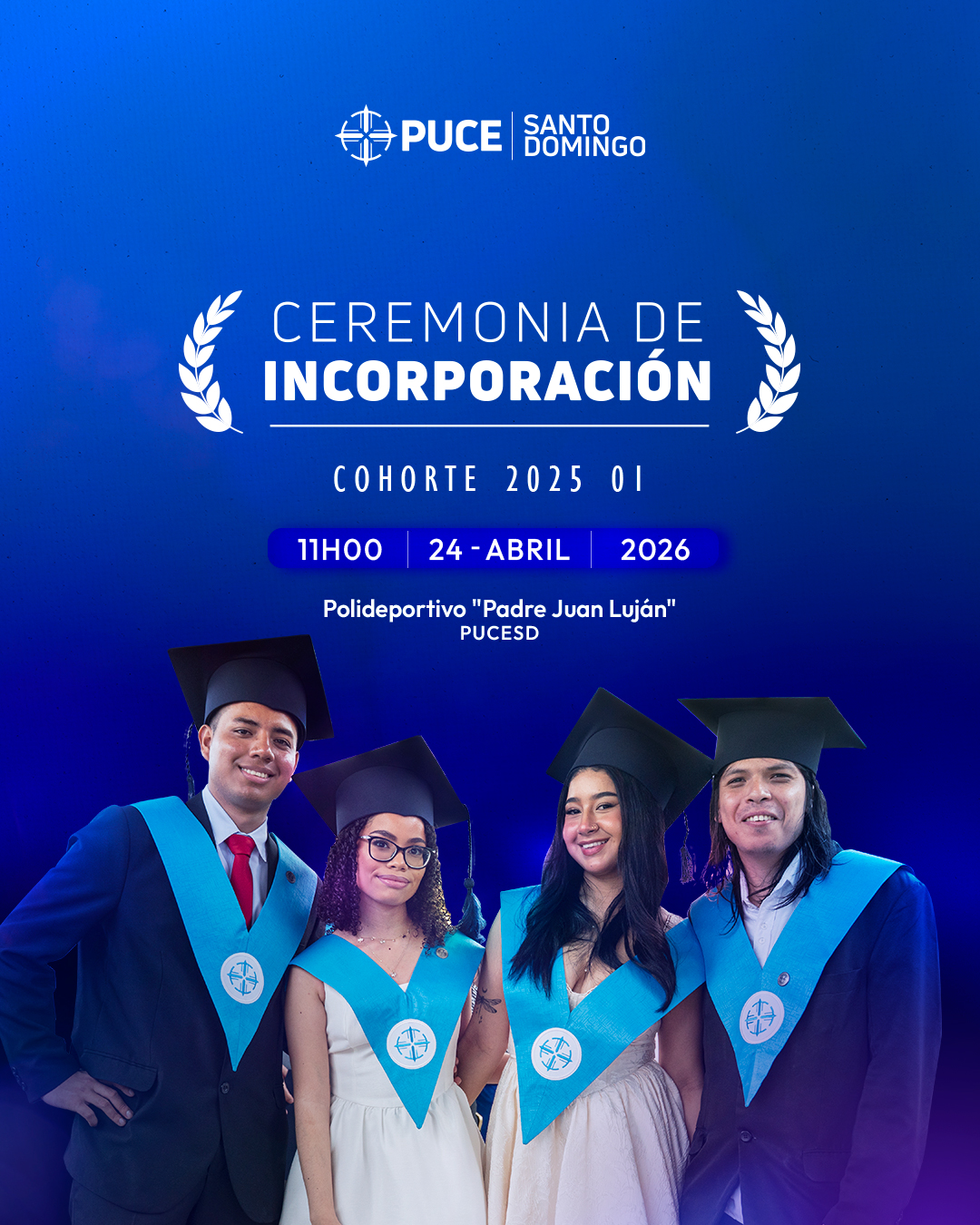 Celebremos juntos la Ceremonia de Incorporación | Cohorte 202501, un momento único donde los sueños se convierten en logros y los esfuerzos en nuevos comienzos.  Fecha: 24 de abril de 2026  Hora: 11h00  Polideportivo “Padre Juan Luján” PUCESD