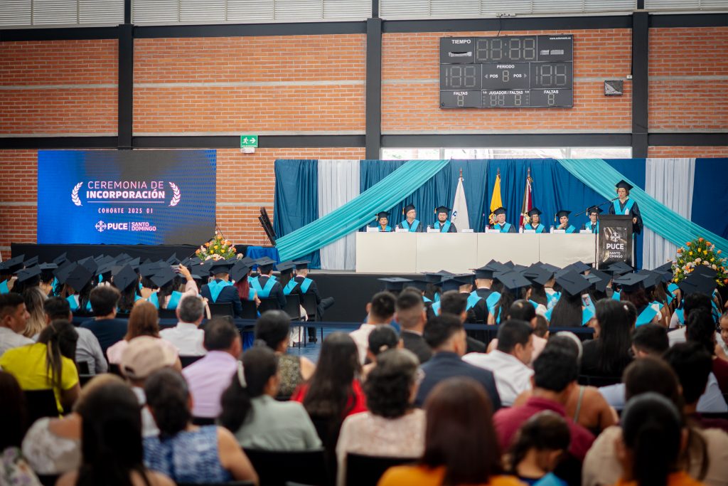 La Pontificia Universidad Católica del Ecuador Sede Santo Domingo PUCESD celebró el solemne acto de incorporación de la cohorte 202501, en una ceremonia cargada de emotividad y significado académico, en la que 175 nuevos profesionales culminaron con éxito su proceso de formación superior; el evento se desarrolló en el Polideportivo “Padre Juan Luján”, espacio emblemático de la Sede que acogió a los graduados de los programas de PUCETEC, grado y posgrado, en un ambiente de orgullo institucional y acompañamiento familiar.