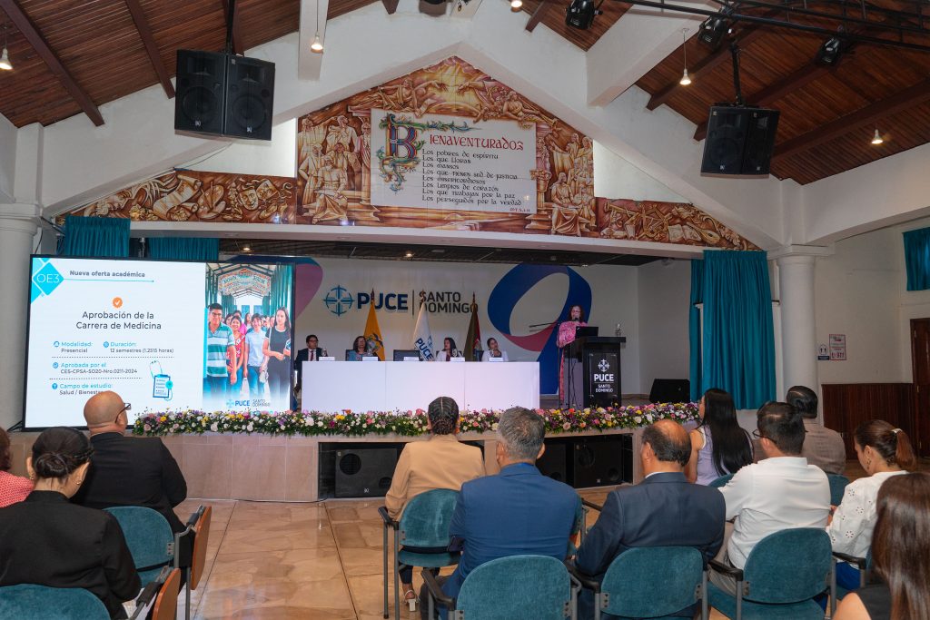 En una jornada cargada de logros institucionales, la Pontificia Universidad Católica del Ecuador Sede Santo Domingo (PUCESD) presentó su informe de Rendición de Cuentas 2024, bajo el lema “Cuenta y Razón”, consolidando así su compromiso con la transparencia, la participación ciudadana y el fortalecimiento de la educación superior en el país. El evento se realizó el 10 de abril de 2025 y contó con la presencia de autoridades provinciales, académicas, representantes de diversas instituciones públicas, estudiantes, docentes y miembros de la comunidad universitarias.